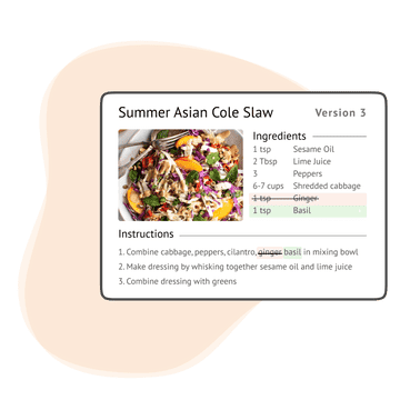 Store recipes digitally, no need for cryptic notes in margins of recipe books or note cards because every edit is tracked and recorded for you